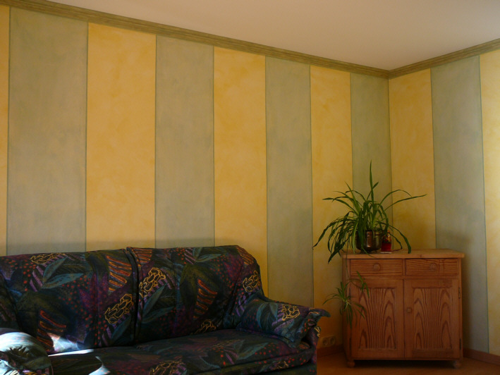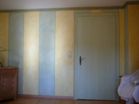Zimmer mit Blockstreifen in Lasur-Wischtechnik auf Streichputz mit