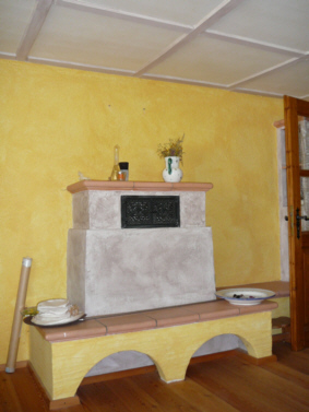 anschließend mit einer Patina versehen. Die Wände und der Kachelofen